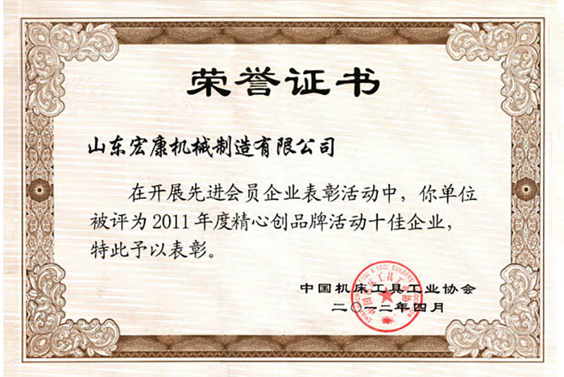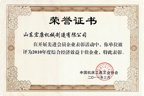 中國機床工具工業協會榮譽證書