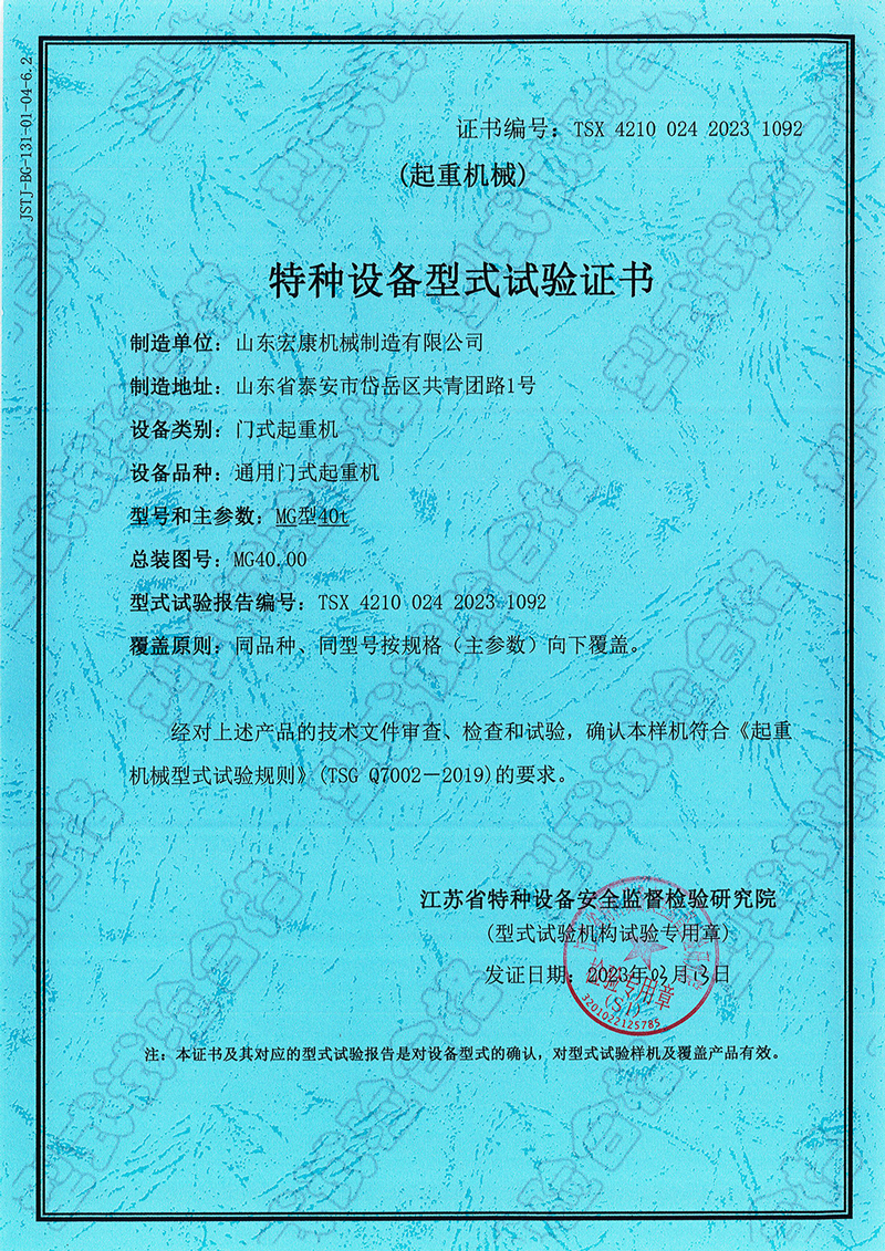 通用門式起重機型式試驗合格證